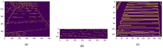 To be able to detect the first step in the image, we first need to detect edges present in the image. For this, we use the Canny edge detection algorithm [43] to enhance the accuracy of detected edges; the Canny edge algorithm is divided into four steps: the Gaussian filter step to remove noise, gradient calculation to find the edge pixel candidates, non-max suppression steps to remove the edges with the weak gradient responses, and the hysteresis thresholding step to thin the detected edge lines. This returns an edge representation of the image, i.e., only the pixels that constitute edges are positive. Other pixels are 0.