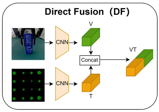 Previous studies focused on different visual and tactile learning tasks and reported that a combination of visual and tactile sensations was superior to a single modality. Unfortunately, existing deep-learning-based visual–tactile fusion approaches combine features of visual and tactile modalities directly and then perform subsequent classification or regression. Owing to the simple structure, the DF method may fail to construct effective visual–tactile features. We believe that an effective fusion approach of features is possible to significantly improve the performance of the target grasp-state detection model.