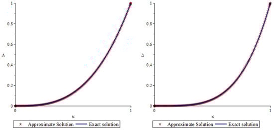 The achieved approximate solutions and exacts one for Example 1 are shown in Figure 1.