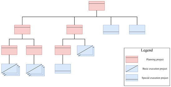The project group network is divided into two types of projects, planning projects and execution projects. Planning projects are recorded as , and their collections are recorded as ; various execution projects are recorded as , and its set is recorded as . The distribution of the two types of programs is as follows: