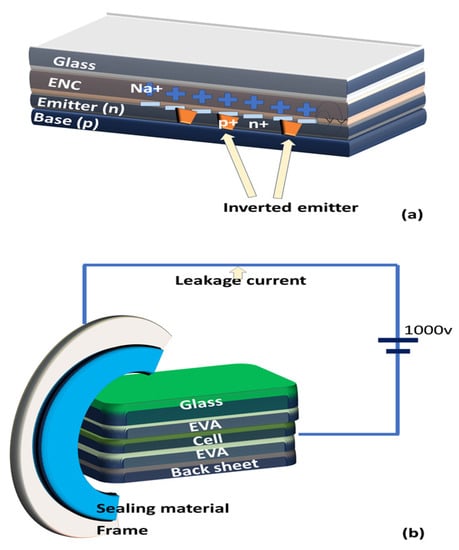 - Schütze, M.; Junghänel, M.; Koentopp, M.B.; Cwikla, S.; Friedrich, S.; Müller, J.W.; Wawer, P. Laboratory study of potential induced degradation of silicon photovoltaic modules. In Proceedings of the 2011 37th IEEE Photovoltaic Specialists Conference, Seattle, WA, USA, 19–24 June 2011; pp. 821–826. Available online: https://ieeexplore.ieee.org/document/6186080 (accessed on 6 April 2023).