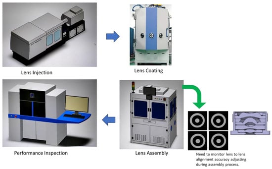 The Glorytek in this study is a well-known high precision lens company in Taichung, established in 2000, now a leading lens manufacturer of mobile phone lenses with more than 20 years in the optical business, competent in optical/mechanical design, mold design and fabrication, injection molding, and process control for mass production. The company focuses on optics research, creation, and innovation to apply global products in the display, mobile, living, entertainment, and optical communication fields. Moreover, considering the high accuracy of lens performance requirements, Glorytek utilizes automatic processes and equipment to produce its lenses. The optical lens industry generally requires high precision and is technology-intensive. From lens injection molding, coating, and assembly to final performance testing, all steps rely on automated production and inspection equipment (Figure 1). This is a highly automated production industry, mainly because of the high precision and technical thresholds required by the camera end products. Moreover, since high-resolution requirements for image systems necessitate camera designs that combine more than six plastic lens elements, it is imperative to set the equipment’s production parameters in the production line. In particular, for the lens assembly process, each lens is assembled to the inside of the mechanism using CCD alignment to ensure that the optical axis coincides with the mechanical axis. Nevertheless, during the assembly process, the machine displacement tolerance, lens production tolerance, and assembly fixture tolerance all affect the quality and performance of the lens assembly. In view of this, the production parameters of the machine are subject to 24 h production monitoring. Once the machine issues warning signals or the continuous defect rate increases, full-time engineering staff are required to immediately analyze production and adjust the production parameters of the machine to avoid downtime affecting the schedule and capacity of post-production processing. Therefore, on the Glorytek assembly line, operators are responsible for transferring finished and semi-finished products to confirm the progress and output quantity, while engineering members are on-call to handle unexpected situations or urgent issues in real-time. Hence, it is critical for Glorytek’s management supervisors to properly arrange engineers on-call within each process, ensuring that they take place smoothly in the assembly line and manufacture plastic lenses for camera applications.