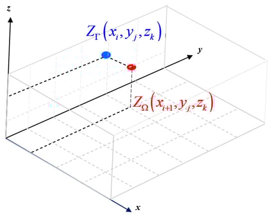 where , and represent the spatial discrete sizes in the , , and directions, and denotes the differential of with respect to .