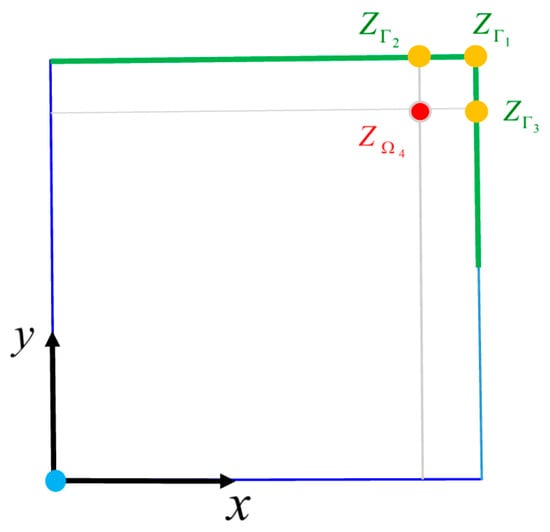where denotes x, y, and z of the spatial variables, is the boundary on the domain , is a temperature field, ,, and represent derivatives of T with respect to x, y, and z, respectively, and and G are known functions. Here, the initial value, , is unknown.