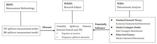 We aim to establish a conceptual framework that will serve as the theoretical explanation of volatility spillover between FinTech and the TFI. To summarize, there are three types of potential determinants, including economic fundamental, risk contagion, and market attention determinants.