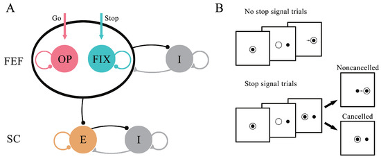 - Boucher, L.; Palmeri, T.; Logan, G.; Schall, J. Inhibitory control in mind and brain: An interactive race model of countermanding saccades. Psychol. Rev. 2007, 114, 376–397. [Google Scholar] [CrossRef]