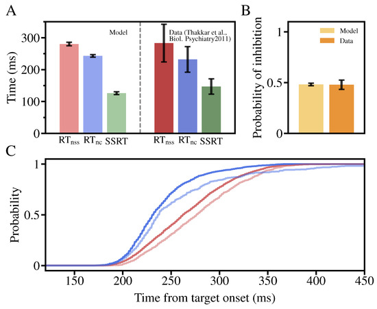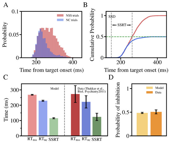 3.1. The Performance of the Neural Circuit Model in the Stop-Signal Task