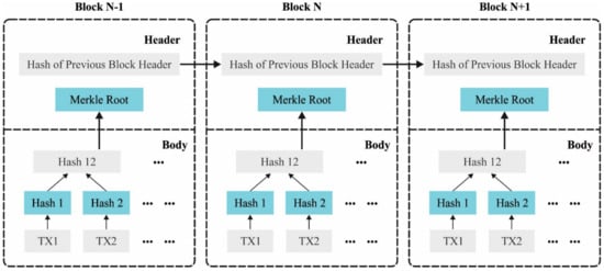 The blockchain (BC) is a de-centralized digital ledger that enables endwise transmission and provides communication among untrustworthy people [21]. It includes number of blocks. In the current research work, all the blocks are incorporated into their prior block via reverse connection, except the initial block (genetic), i.e., the hash code of its early block. For instance, assumes the hash code of the early . Similarly, all the blocks contain additional data fields, namely, an encryption opcode, an identifier, a core hash of every commitment, and a core hash of every operation. Since single-bit change may result in commitments, the unique hash code and the fixed-size core hash values of these two functions are irreversible. One particular condition is satisfied, i.e., smart contracts working on the upper end of the BC can simplify the application of restrictions and contractual agreements. After it is synthesized to the implemented code and recorded from the BC, based on the irreversibility of the BC and core hash of the smart contract, the smart contract becomes irreversible. The smart contract helps in improving the efficacy of business operations, reducing its potential threats, and streamlining the administration. Figure 2 illustrates the structure of the BC.