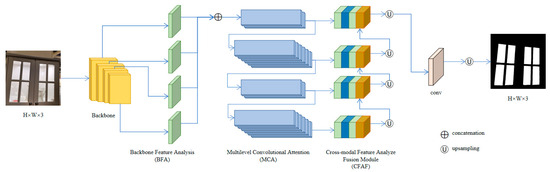 - A multi-level convolutional attention module (MCA), which includes the custom-designed multi-scale convolutional attention module and a convolutional self-attention (CSA) module, was developed. In combination with the transformer head, these methods provide comprehensive feature analysis and fusion, offering an enhanced solution for glass detection in single RGB images;