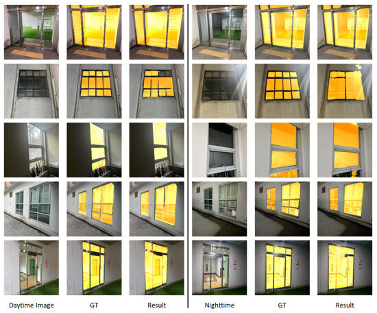 We conducted additional experiments to specifically address the challenges posed by varying lighting conditions, as illustrated in Figure 8. In the context of these experiments, daytime scenarios were characterized by ample lighting, whereas nighttime scenarios represented dimly lit environments. Photographs were captured at the same location under both of these conditions. Due to equipment constraints, maintaining the exact positioning was not feasible, but the images were shot from the same vantage point. Ground-truth annotations were provided for these images. As depicted in Figure 8, the proposed method consistently detected glass objects both indoors and outdoors, largely unaffected by the lighting conditions. This underscores the efficiency and robustness of CAGNet across diverse lighting scenarios, and it’s evident that the evaluation metrics do vary based on these conditions, highlighting the model’s adaptability.