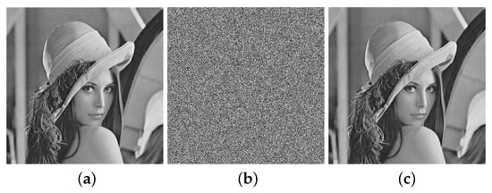 The result of encrypting a gray image (512 × 512 Lena) is shown in Figure 9, indicating that the image encryption algorithm is also effective for gray images.