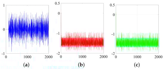 - Calculate the chaotic sequence B according to the novel eighth-order hyperchaotic system when and initial values are (0.1, 0.1, 0.1, 0.1, 0.1, 0.1, 0.1, 0.1).