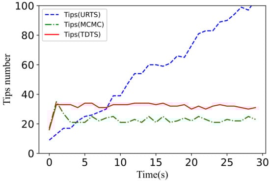 - Under the same conditions as the above two algorithms, we know that the number of tips in TDTS changes steadily around a single value.