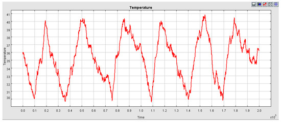 The thermostatic control system is a feedback control system in CPS that regulates heating and ventilation automatically. It can be represented by an uncertain hybrid timed automaton, as depicted in Figure 4. The output of the thermostat model process is the temperature. The formal model of the system can be expressed as follows.