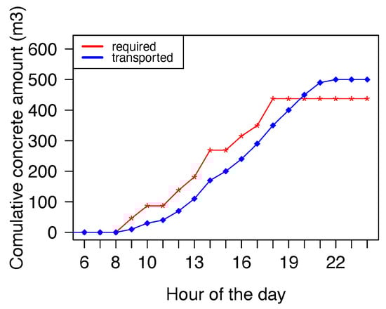 - Yan, S.; Lin, H.; Jiang, X. A planning model with a solution algorithm for ready mixed concrete production and truck dispatching under stochastic travel times. Eng. Optim. 2012, 44, 427–447. [Google Scholar] [CrossRef]