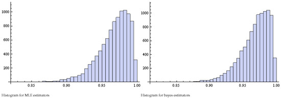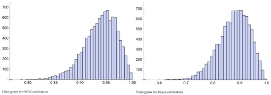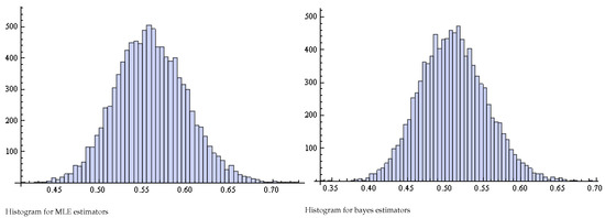 The above estimate does not have a simple closed form; thus, we obtain it numerically. For the asymptotic distribution of the Bayes estimator , the Bernstein–von Misses theorem [36] concludes that the Bayesian estimator and the maximum likelihood estimator are asymptotically equivalent for large sample sizes.