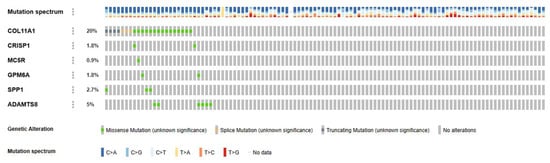 - Nallanthighal, S.; Heiserman, J.P.; Cheon, D.J. Collagen Type XI Alpha 1 (COL11A1): A Novel Biomarker and a Key Player in Cancer. Cancers 2021, 13, 935. [Google Scholar] [CrossRef]