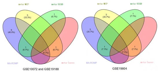 - Li, Q.; Wang, S.; Huang, C.C.; Yu, M.; Shao, J. Meta-analysis based variable selection for gene expression data. Biometrics 2014, 70, 872–880. [Google Scholar] [CrossRef]