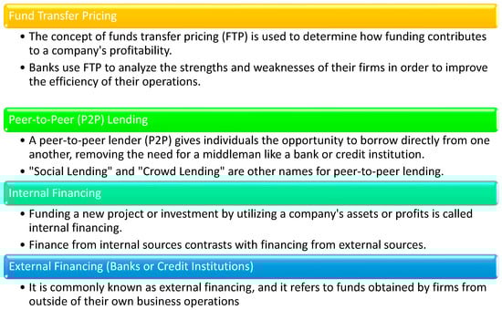 The prediction of each member of the chain regarding the final demand determines the amount of their investment. Predictable changes in the company’s working capital level make it possible to plan for its surplus and deficit. When companies face a working capital deficit, they usually have two methods to cover it, depending on the amount of time and the number of resources they require, either by converting their assets to cash or by obtaining loans (generally banks and financial institutions). When it comes to state-of-the-art financing methods, it is evident that they are attracting increasingly more attention from various institutions as they develop. A summary of some new-emerging financing methods is shown in Figure 1.