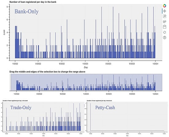 The data that can be extracted from the model’s output for running the statistical hypothesis test are the number and the amount of the total daily loans granted from outside the chain (Table 3). Another reason for using these items is the existence of analytical diagrams of the output of this model. It should be noted that the Net Present Value (NPV) on the zero day of the simulation is 1 January 2022. If we consider the number of loans received as the average, we can use the t-test to compare both pairs of scenarios: