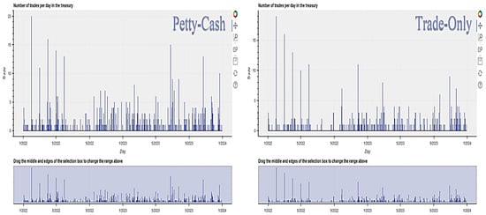 Figure 12 shows a detailed list of the checks exchanged in the primary treasury in IF-I and IF-II. Due to the fact that the secondary treasury is producing checks, the number of trades has increased, and there are more checks with lower amounts that exist (as a result of transferring petty checks from the primary treasury to the secondary treasury).