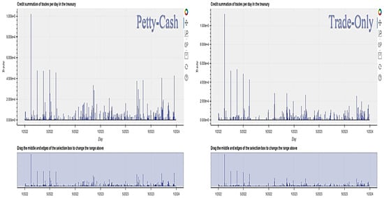 The value of the checks exchanged in the primary treasury in IF-I and IF-II is presented in Figure 13. A similar analysis can be carried out for this cash flow, as it would be for the number of checks exchanged in the primary treasury.