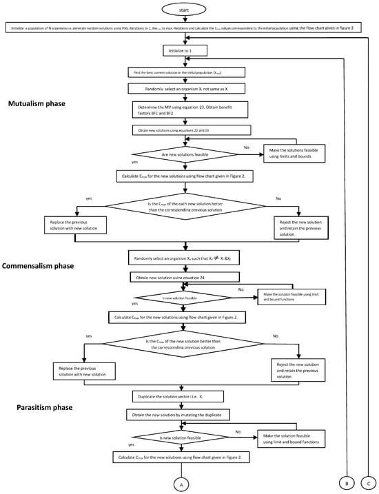 The SOSA algorithm starts with a randomly generated starting population of ‘n’ organisms in the system (i.e., eco size). Additionally, if the revised solution in a phase has a higher functional value than the previous one, it is adopted. The optimization course is iterated until the termination requirement is satisfied.