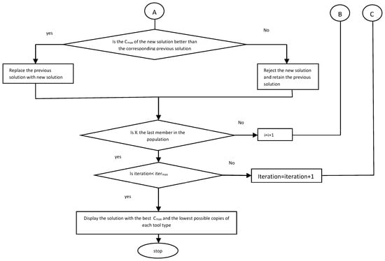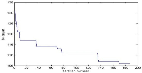 The formulation of the optimization problem is the minimization of the objective function. The maximum completion time among all jobs’ last operations can be conveniently chosen as the objective function Z. The objective function for the minimization of Cmax is: