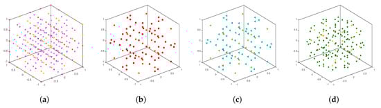 Figure 2 and Figure 3 show the resulting sparse grids of the above four examples in both 2-d and 3-d cases with and , respectively. We note that these four sparse grids have different structures.