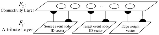 SM-ART consists of three input channels as shown in Figure 4 and the input pattern of SM-ART is , where is the source node, is the target node and is the weight of the edge from source node to target node. The dimensions of the input vectors are . We use one-hot encoding in , i.e., when the i-th event node is the source node of this edge, . For other event nodes , . The learning process of SM-ART needs to integrate the input patterns of all edges sent from a certain source node into on category node in the connectivity layer. We use one-cold encoding in and since the fuzzy AND operation ∧ retains the smaller values from the generalized vectors. In , we have where the indicated target node has an event id j. Correspondingly, for all and .