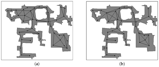 In order to compare and analyze the effect between the two EM-ART input patterns, we select results of topological graphs constructed by two different patterns in a specific scene, as demonstrated in Figure 7. Obviously, both patterns do a good job of extracting the structure of the environment, but has more nodes, resulting in some redundancy. In comparison, the graphs constructed by can generate nodes at each key node position. Based on this observation, we finally use as the input pattern of EM-ART to generate spatial memory.