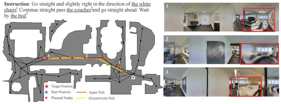 - Chen, K.; Chen, J.K.; Chuang, J.; Vázquez, M.; Savarese, S. Topological Planning with Transformers for Vision-and-Language Navigation. In Proceedings of the IEEE/CVF Conference on Computer Vision and Pattern Recognition, Nashville, TN, USA, 20–25 June 2021; pp. 11276–11286. [Google Scholar]