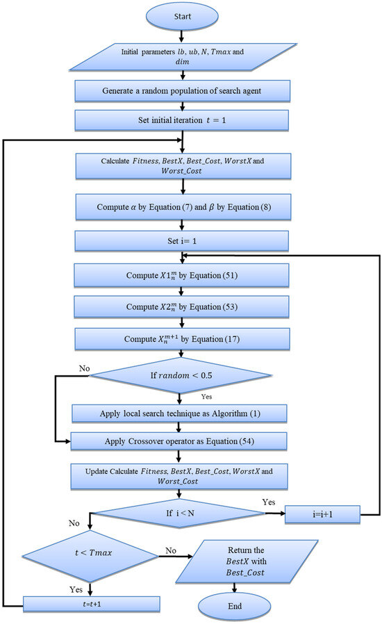 The algorithms discussed earlier have been applied to various topics, and their results have been found to be satisfactory. However, according to the No Free Lunch theorem [33], there is not yet a superior method of optimization in all circumstances. Furthermore, many optimization methods have benefits and drawbacks that are comparable to one another [34,35]. These approaches, for instance, have a substantial benefit in that they can handle a diverse range of systems with nonlinear fitness functions and restrictions [36]. This is just one example. The primary drawbacks include difficulty adjusting their parameters, the potential for early convergence, the inability to find global optimal solutions, the lack of diversity, and the instability in balancing exploration and exploitation in the solution space [37,38]. These drawbacks can be overcome, however, by using alternative approaches. These methods, if developed with care, have the potential to provide extraordinary performance and versatility for solving difficult optimization problems in the real world [39,40].