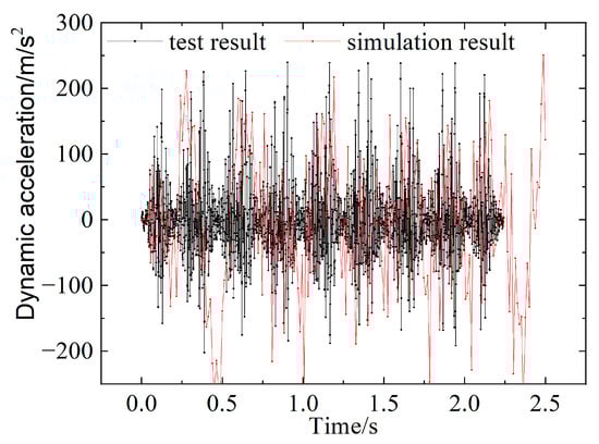 Comparison of measured dynamic results and simulation results with different boundaries. (a) Dynamic stress. (b) Dynamic acceleration.