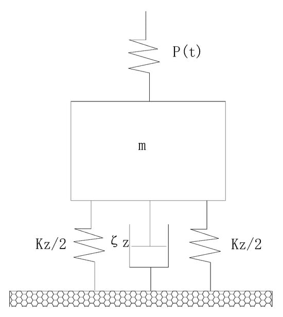 Principle of the excitation method tests. (Note: Kz is the compressive stiffness of the foundation and foundation (kN/m), m is the total mass of the vertical vibration of the foundation kg), is vertical damping ratio of foundation; P(t) is excitation force.).