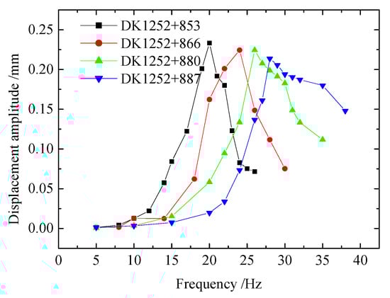The curves of vertical amplitude variation with frequency are shown in Figure 5. And the results are shown in Table 2.