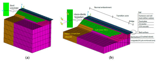 3D bridge approach simulation model (a) Fixed boundary. (b) Viscoelastic artificial boundary.