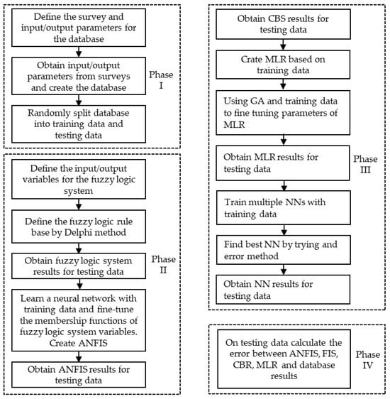Phase 3: To justify ANFIS employment, other quantitative methods are used for the assessment of CSI. For this purpose, MLR, CBR, and ANNs are used. This is explained in more detail in Section 3.4.