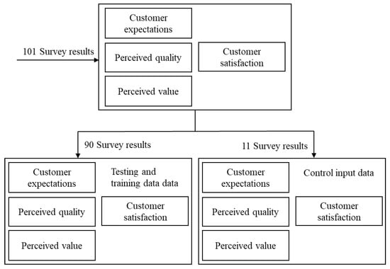 Phase 1: The survey for the determination of customer satisfaction is defined in compliance with the ACSI methodology. A sample of 109 surveys is collected. The data filtering and cleaning procedures are performed, so eight surveys have been removed from further analysis due to suspicious answers. With 101 regular surveys, the input database is formed as well as the testing database. The explanation in detail is provided in Section 3.1.