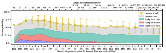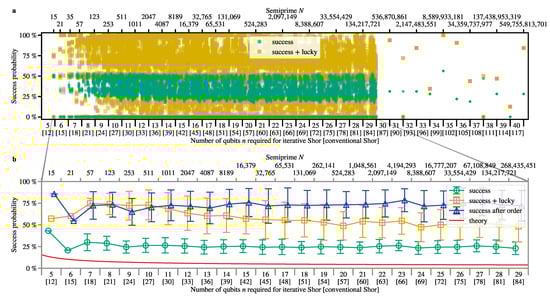 - Leander, G. Improving the Success Probability for Shor’s Factoring Algorithm. arXiv 2002, arXiv:quant-ph/0208183. [Google Scholar]
