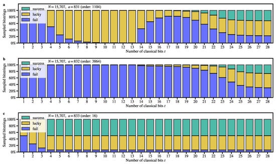 - Bastos, D.C.; Brasil Kowada, L.A. How to detect whether Shor’s algorithm succeeds against large integers without a quantum computer. Procedia Comput. Sci. 2021, 195, 145–151. [Google Scholar] [CrossRef]