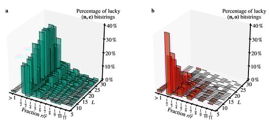 - Although Shor’s order-finding algorithm is the most prominent quantum algorithm for factoring, a practical solution of the factoring problem on gate-based quantum computers might rather use the Ekerå-Håstad factoring scheme [63] based on the discrete logarithm quantum algorithm (see point 3 in Section 1.1). Instead of stages in the iterative quantum circuit (cf. Figure 2) using the semiclassical Fourier transform, this algorithm requires at most stages, with a systematic option to reduce t further at the cost of reducing the success probability below 99% [64]. In the context of quantum circuit simulation, the Ekerå-Håstad scheme would save valuable execution time (cf. Section 2.9), allowing for more statistics to be gathered for larger factoring scenarios.