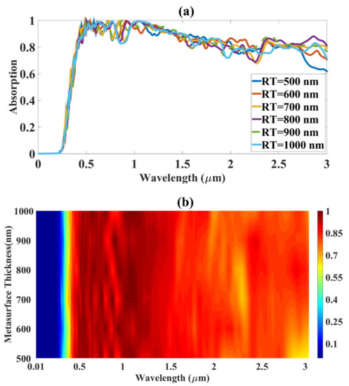 - Patel, S.K.; Charola, S.; Parmar, J.; Ladumor, M. Broadband metasurface solar absorber in the visible and near-infrared region. Mater. Res. Express 2019, 6, 086213. [Google Scholar] [CrossRef]