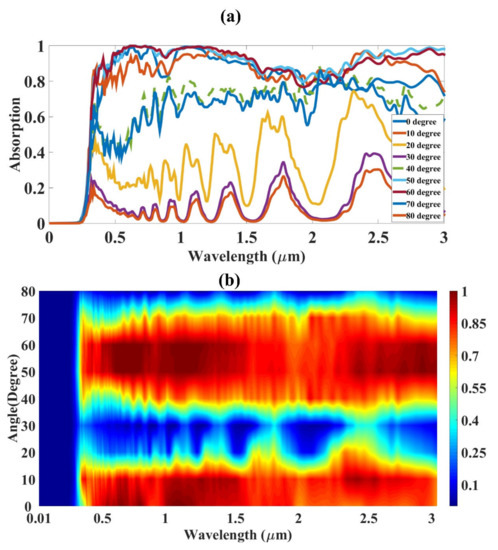 - Sekhi, S.Z.; Shokooh-Saremi, M.; Mirsalehi, M.M. Ultra-broadband, wide-angle, and polarization-insensitive metamaterial perfect absorber for solar energy harvesting. J. Nanophotonics 2020, 14, 046014. [Google Scholar] [CrossRef]