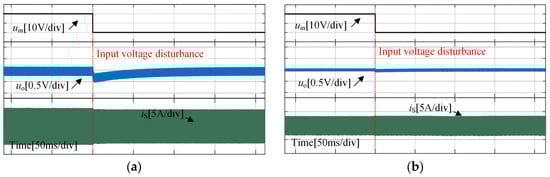 Transient response waveforms with two control methods when input voltage changed from 100 to 80 V. (a) SPS modulation; (b) Soft-switching and no backflow power control.