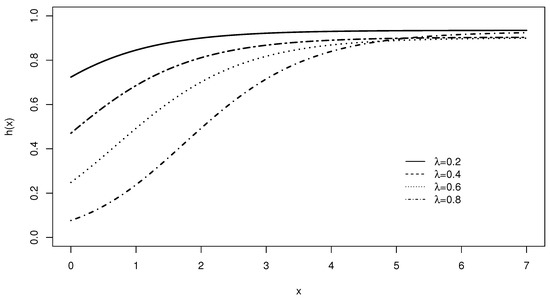 The plots of the HRF of the LiE1 distribution for various choices of parameter with .