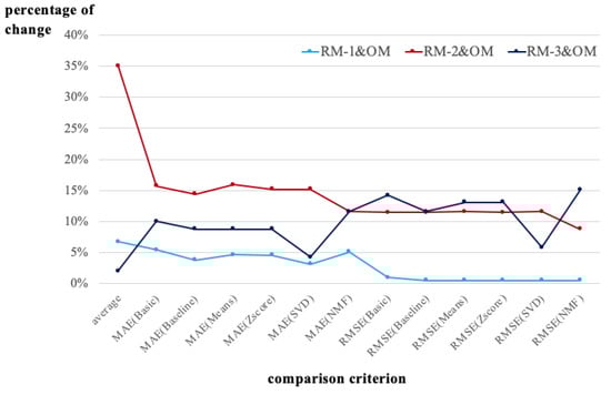 - The low sparsity and high prediction accuracy of the proposed method were verified by comparisons with the OM results. (Improvements of approximately 16% based on KNN (MAE) and 15% based on SVD (MAE), and a three times improvement in the sparsity based on RM-1&OM were obtained.)