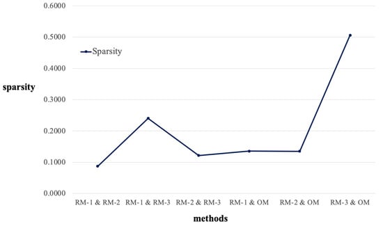 The sparsity of each matrix was calculated and the proposed matrix was verified to be denser than the OM. The differences in the items contained in the RM were demonstrated by calculating the Jaccard similarity of the set of items in each matrix. On this basis, we verified the differentiation of the RM derived from each methodology, and, finally, a method for constructing a denser input matrix, as well as a method for deriving high accuracy were presented.