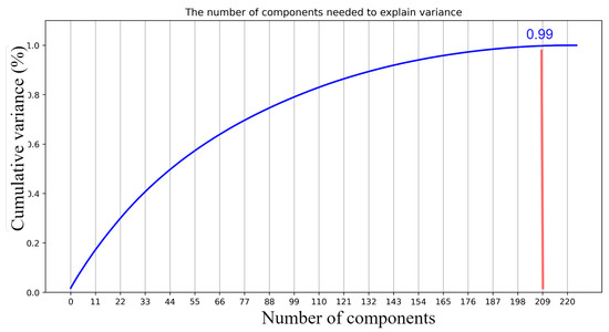 Selecting the best threshold. The appropriate threshold is (0.99) and the number of eigenvectors is 209.