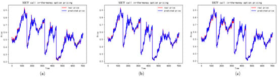The performance of ITM call options in different features (a) represents the LSTM with realized skewness, (b) represents the LSTM without realized skewness, (c) represents the LSTM with realized skewness and realized kurtosis.